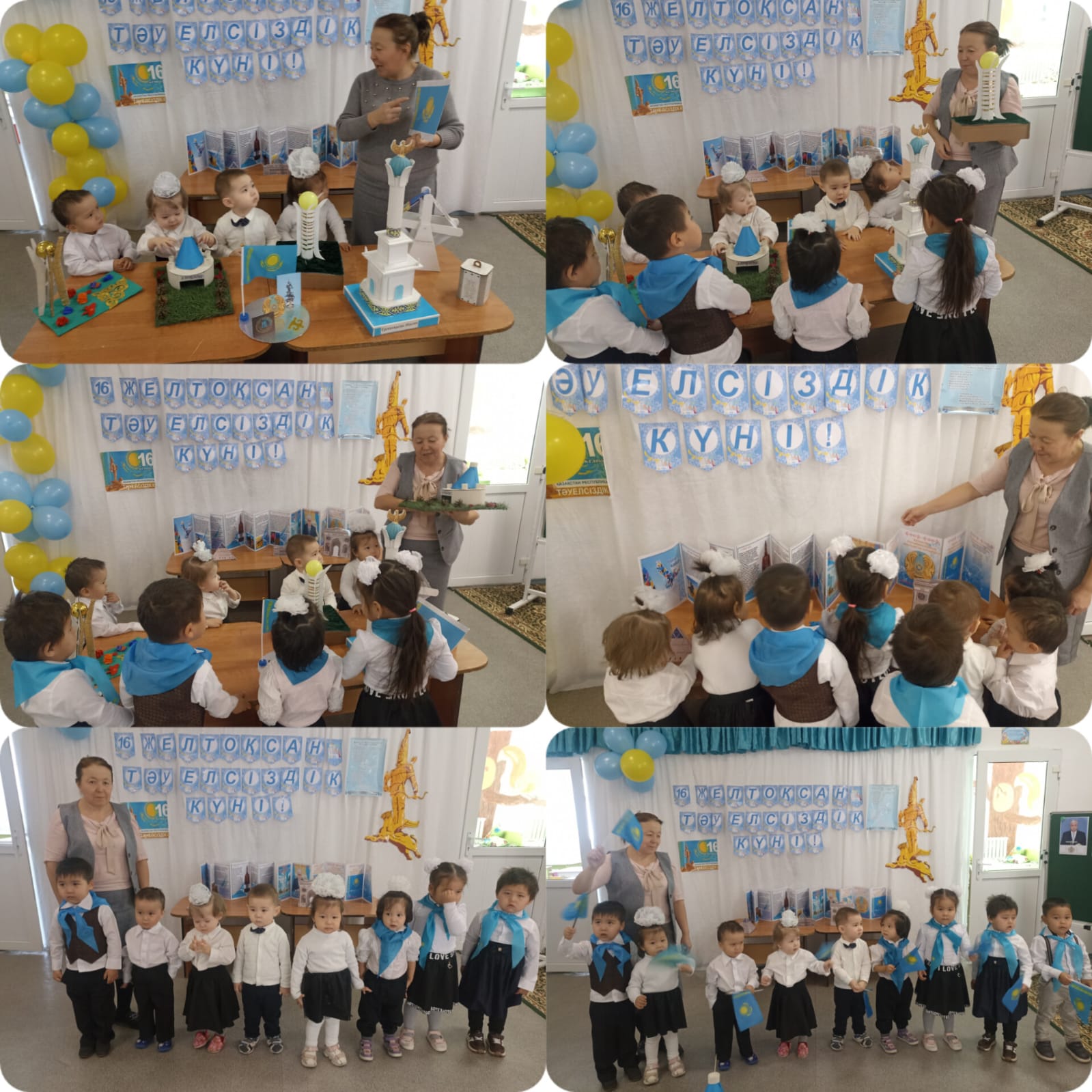 16-желтоқсан Тәуелсіздік күніне орай Балауса шағын орталығы "Құлыншақ" кіші тобында "Менің- Отаным Қазақстан" тақырыбында көрме өткізілді.Мақсаты: Балаларға тәуелсіз мемлекет туралы түсінік беру балалардың Отанға деген сүйіспеншіліктерін арттыру. Қазақстан Республикасының мемлекетік рәміздері: Елтаңба, ту, гимн туралы білімдерін қалыптастыру. Патриоттық сезімге баулу. Елімізді, жерімізді қадірлеуге, сүюге тәрбиелеу.