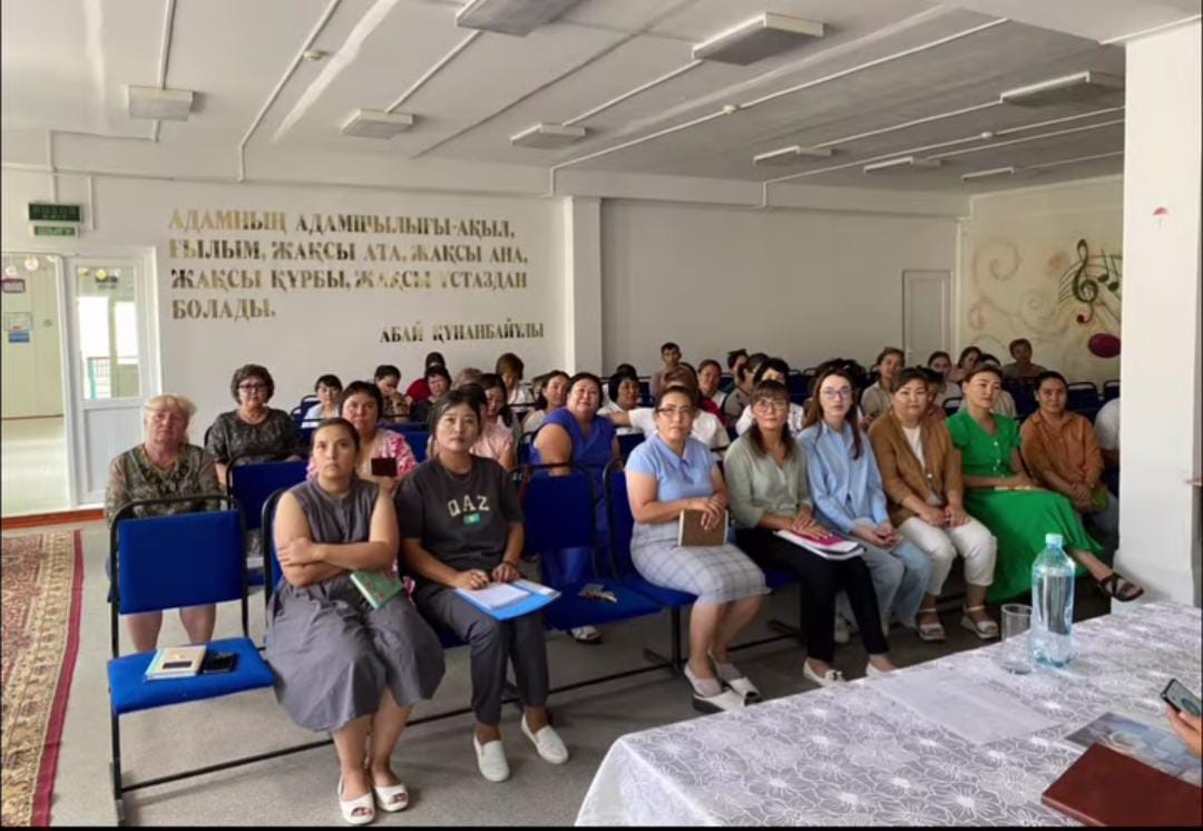 Мектепте жаңа 2024-2025 оқу жылының басталуына орай педагогикалық ұжымға жиналыс өткізілді. Мектеп директоры Салтанат Жалқынқызы педагогтерді «2024-2025 оқу жылында ҚР жалпы білім беретін мектептерінде білім беру процесін ұйымдастырудың ерекшеліктері туралы» Әдістемелік-нұсқау хатының жобасымен таныстырды. Сонымен қатар «Білім класс» электронды журналды қолдану бойынша, «Цифрлі ұстаз» жобасы туралы түсіндірме жұмысы жүргізілді. Мектеп директоры бүгінгі күнге өзекті болып тұрған білім алушылардың білім сапасын көтеруге бағытталған жұмыстар туралы, білім алушылардың тәртіптері, тәрбие жұмыстары, әдістемелік жұмыстарға, білім беруді жақсарту үшін жасанды интеллектіні қолдану, үлгерімі төмен оқушылармен жұмыс жүргізу болатыны туралы айтты. Сонымен қатар, ұстаздарға әдістемелік нұсқау хаттың алдағы оқу жылында білім беру процесінің тиімділігін қамтамасыз етуде әдістемелік қолдау болатынын айтып, сенім білідірп, үміт артты