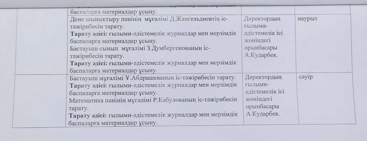 01 сентябрь 2022 0 1 2 3 4 5 2022-2023 оқу жылына арналған "Озық педагогикалық іс-тәжірибе" тарату жұмыс жоспары