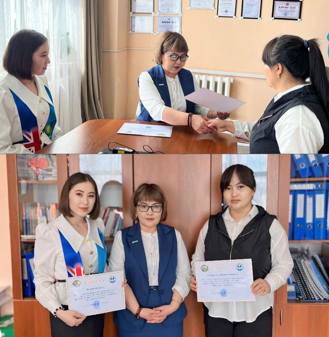 "Ағылшын тілін оқытудағы коммуникативті жүйелік-белсенді тәсілдерді пән бойынша білім сапасын арттыру" тақырыбында педагогикалық тәжірибені таратқаны үшін мектебіміздің ағылшын тілі пәні мұғалімдері: Жакишева Жадыра Берикгалиқызы және Маратқызы Нұрсәуле аудандық білім бөлімінің Алғыс хатымен марапатталды.