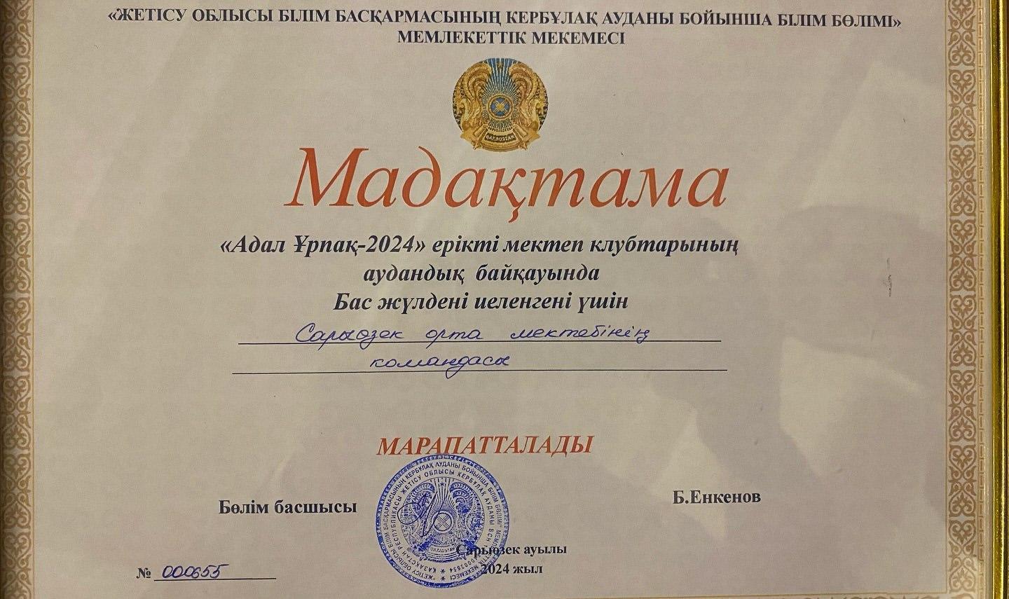 Қызылжар ауылы Ж.Жапаров орта мектебінде аудандық “Адал ұрпақ” сайысында Сарыөзек орта мектебінің парламентті “Адал Ұрпақ” ұйымы Бас Жүлдені иеленді.