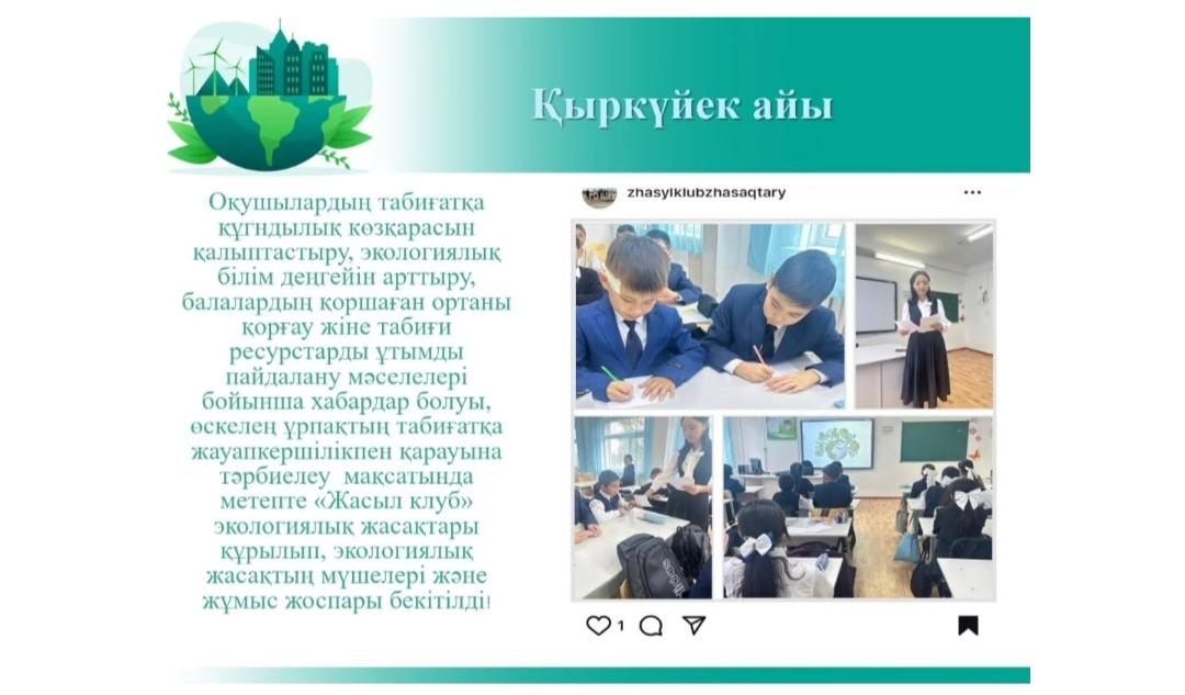 "Жасыл клуб" – бұл тек экология емес, бұл табиғатпен үйлесімділік пен саналы өмір салтына қадам! 🌳💧