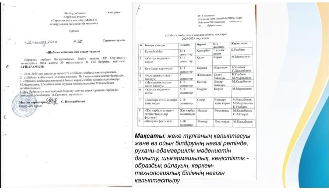 2025 жылдың 6 қаңтар күні директор жанындағы кеңесте "Біртұтас тәрбие бағдарламасы" аясында жүзеге асырылып жатқан "Шабыт" жобасының I жарты жылдық қорытынды есебі ұсынылды. 🌟