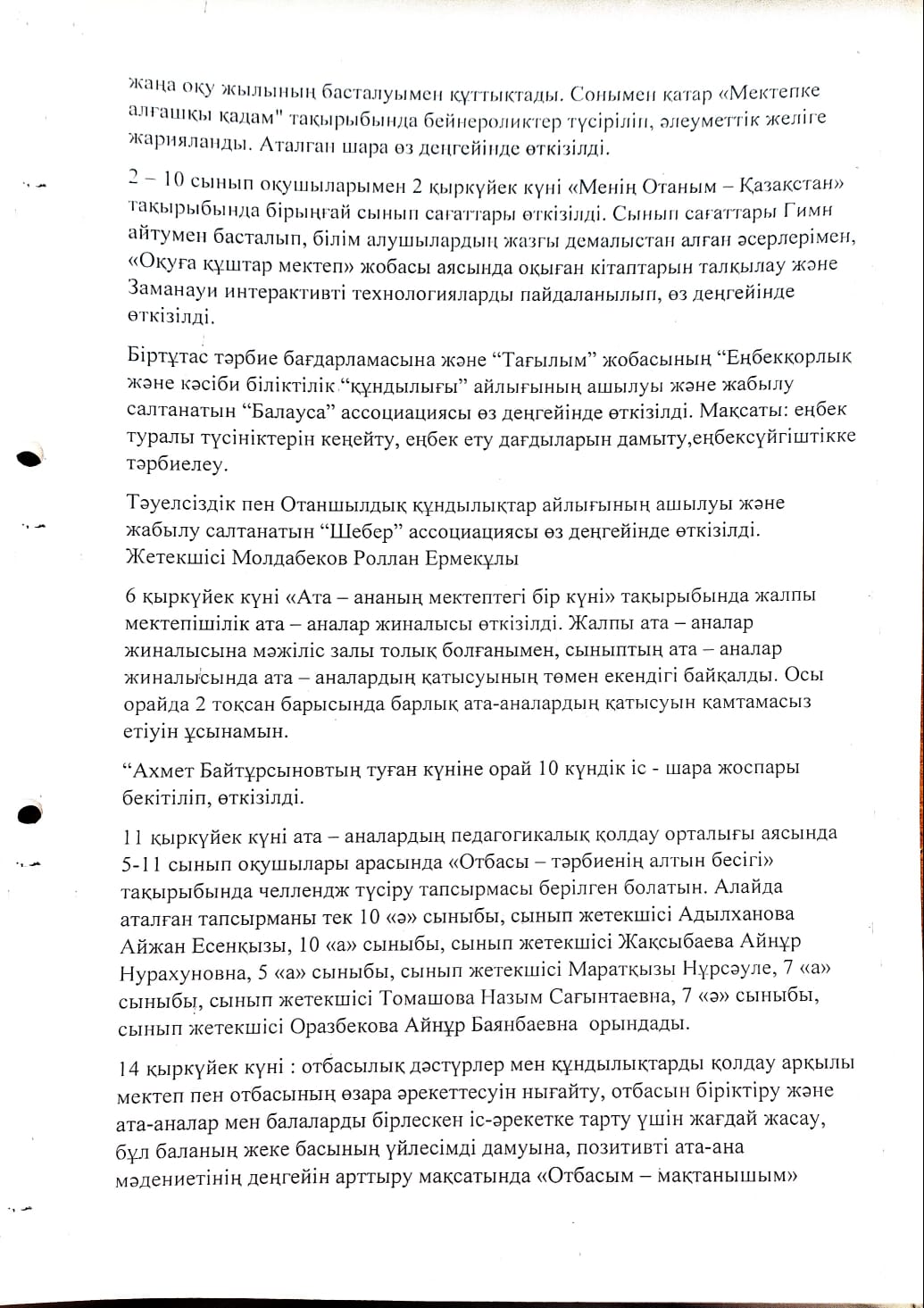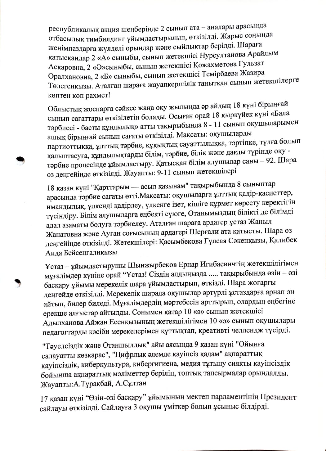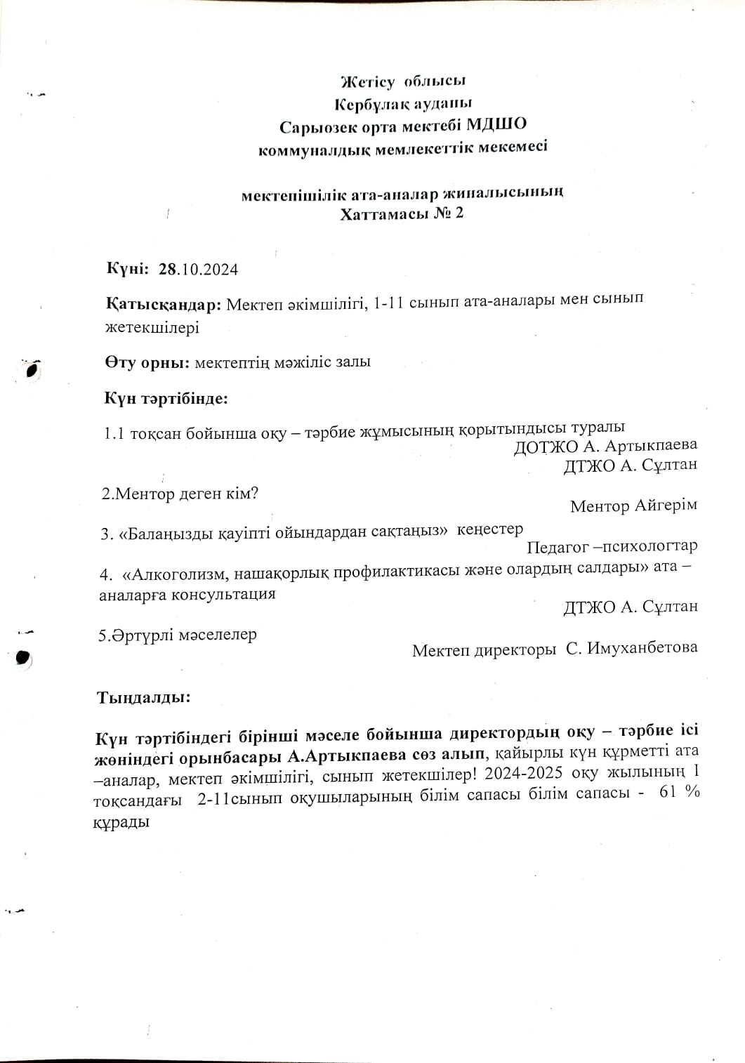 Жалпы мектепішілік ата - аналар жиналысының №2 хаттамасы » Жетісу облысы Кербұлақ ауданы Сарыөзек орта мектебі