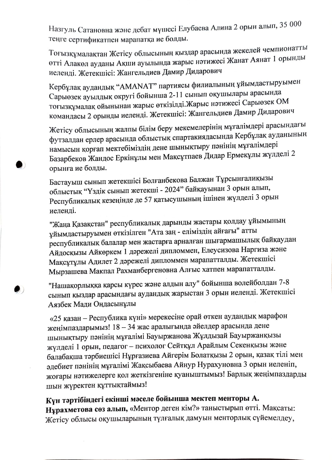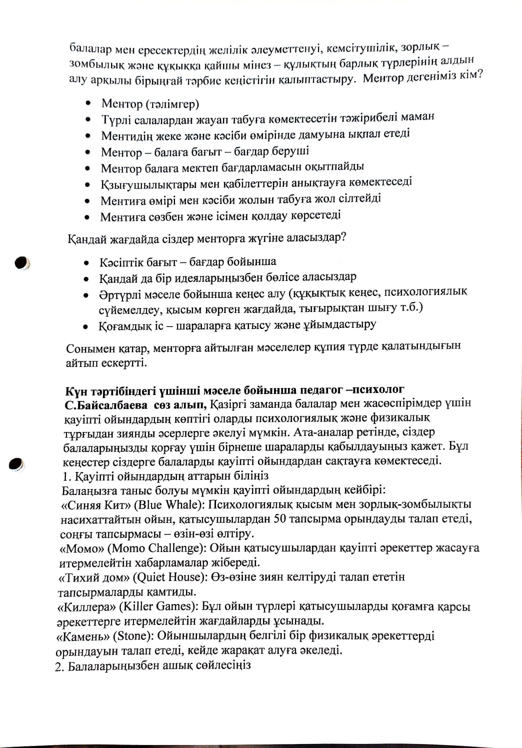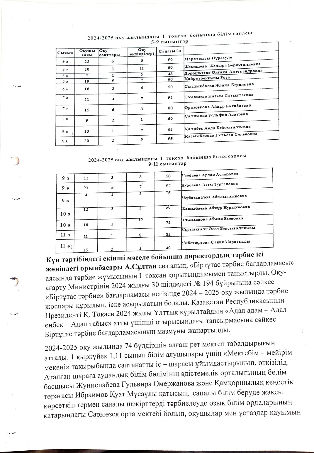 Жалпы мектепішілік ата - аналар жиналысының №2 хаттамасы » Жетісу облысы Кербұлақ ауданы Сарыөзек орта мектебі