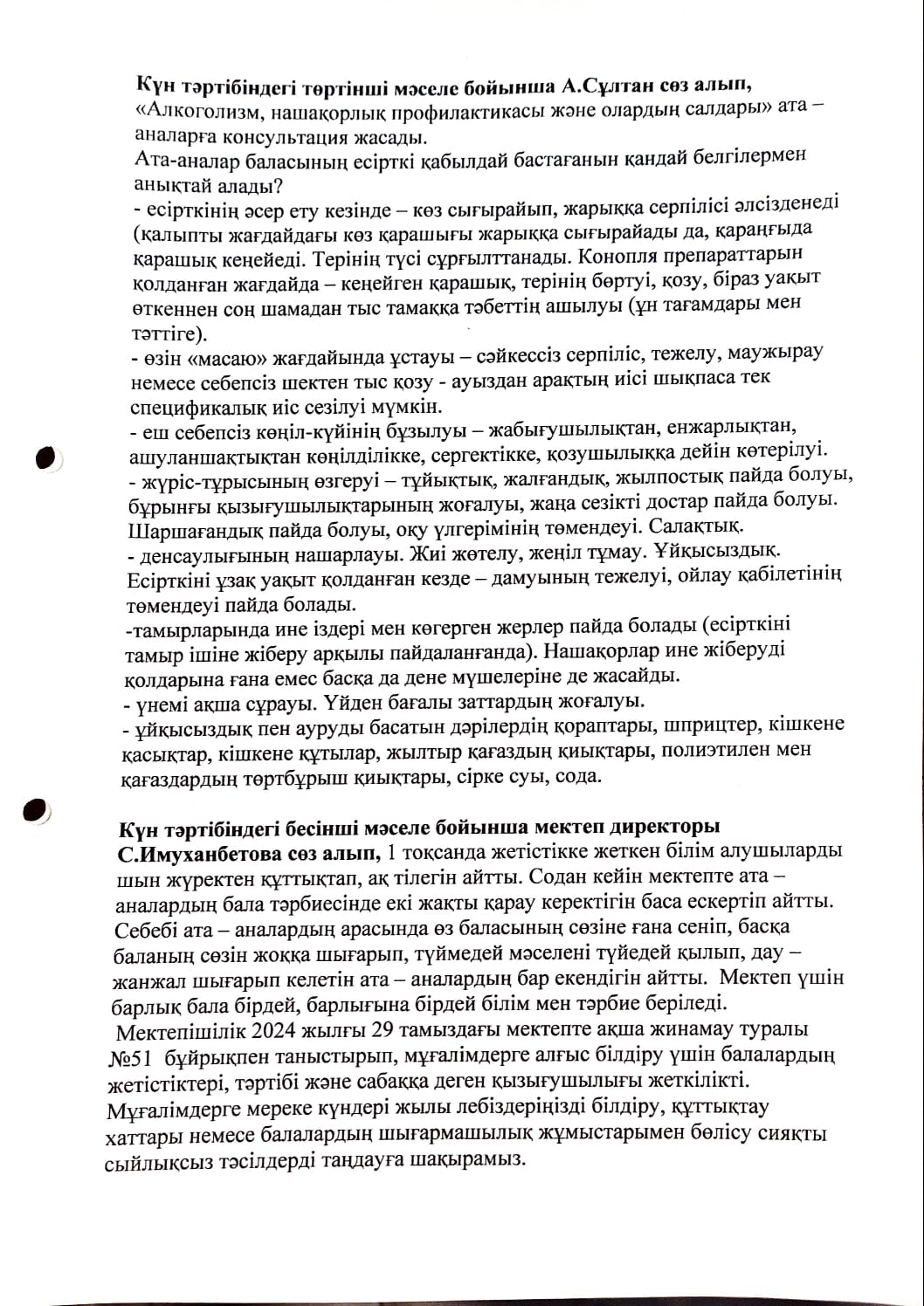 Жалпы мектепішілік ата - аналар жиналысының №2 хаттамасы