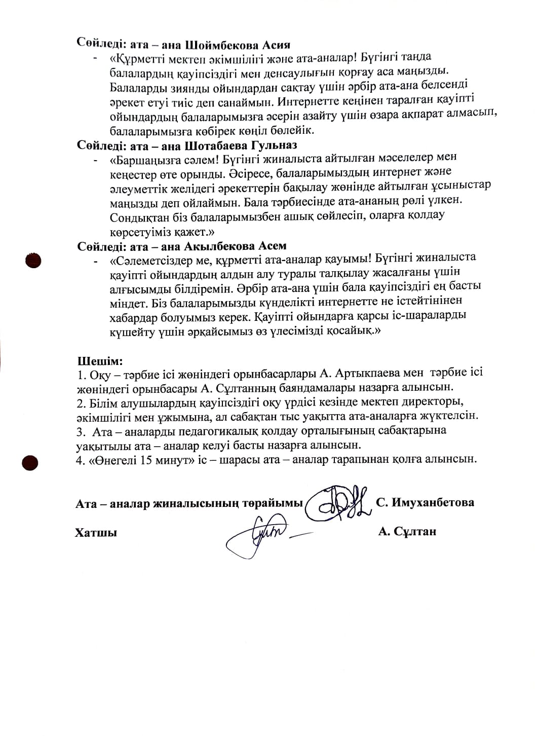 » » Жалпы мектепішілік ата - аналар жиналысының №2 хаттамасы