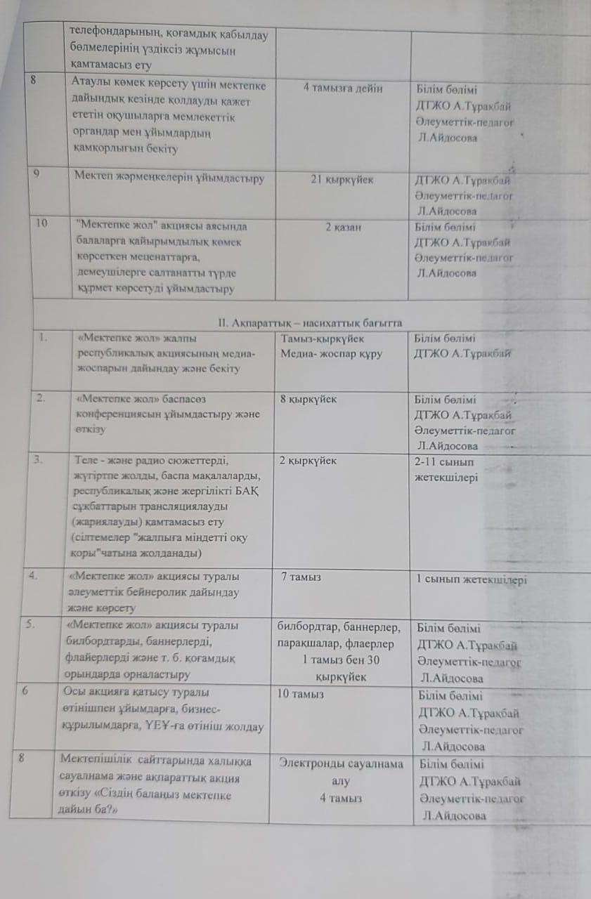 Мектепке жол акциясының бұйрығы